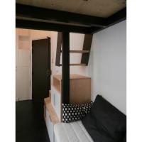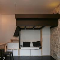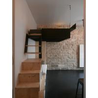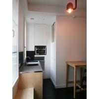 Aucun recoin n’a été laissé de coté, tant dans l’aménagement de la micro salle d’eau éclairée en second jour, que dans la cuisine assez spacieuse pour cuisiner au quotidien. Nous avons profité de la hauteur sous plafond généreuse pour placer le lit en mezzanine, libérant ainsi l’espace de vie.